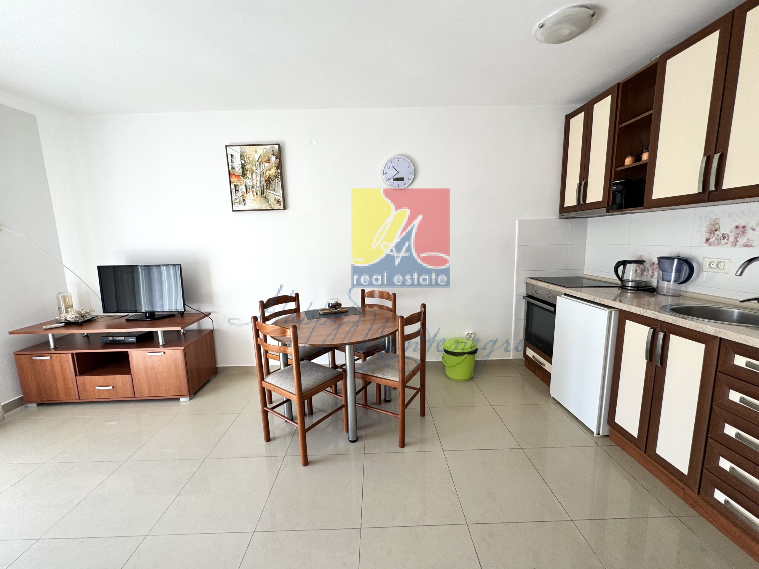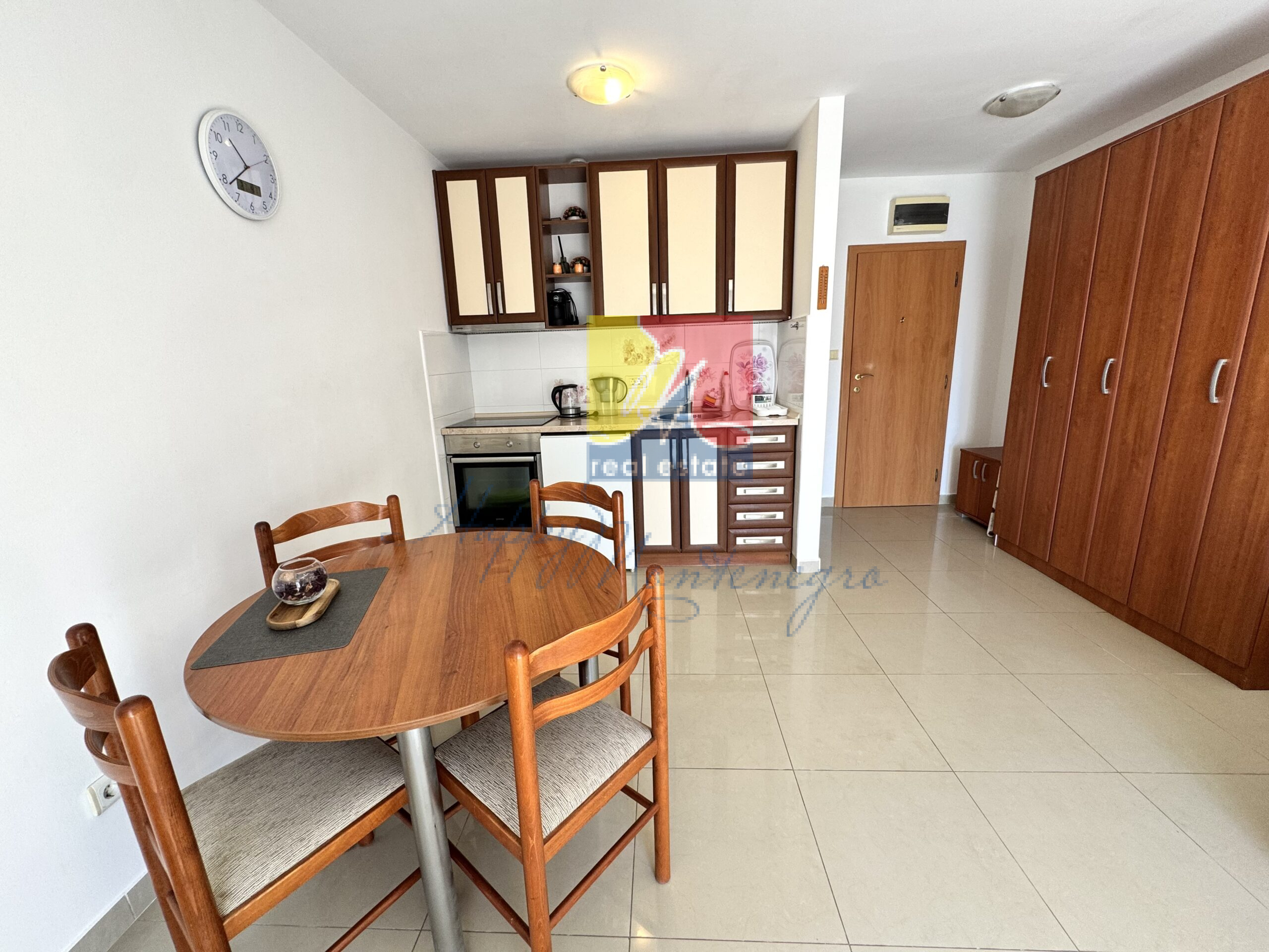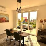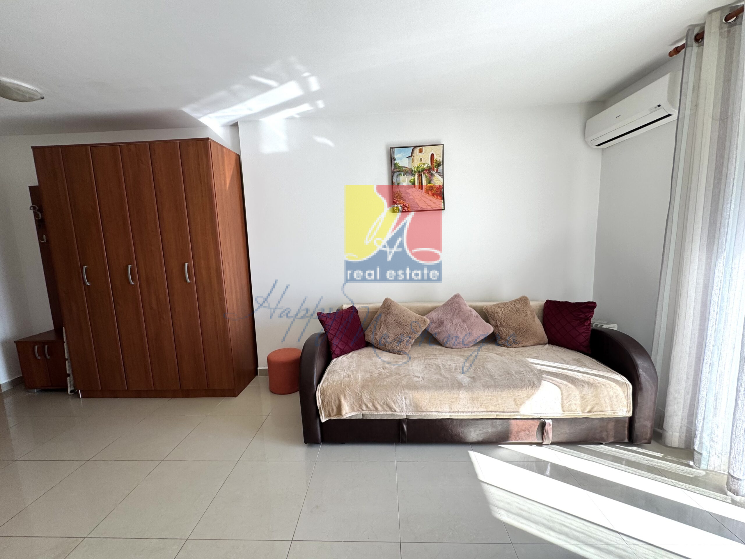 В продаже светлая квартира 42 м2 + 2 террасы с видом на море. Находится в 100 метрах от моря в районе Мельине. Квартира теплая и солнечная — в ней будет комфортно летом и зимой. Состоит из гостиной с кухней, террасы, выходящей на восток, ванной комнаты, спальни со своей отдельной террасой, выходящей на запад. Отличная планировка — в каждой комнате своя терраса. Прекрасный вид на море, будет согревать ваше сердце. Квартира оснащена мебелью, техникой и всем необходимым для жизни — можно сразу заезжать и жить! Отличные документы: квартира легализована, один владелец. До моря всего 100 метров — три минуты и вы на море! В радиусе 200 метров два универсальных сетевых магазина, фруктовые лавки, интерьерный магазин, пекарня, кафе и рестораны, марина, бассейн, СПАкомплекс — все для удобства и наслаждения жизнью. Квартира находится на небольшой горке — вы будете в отличной форме!